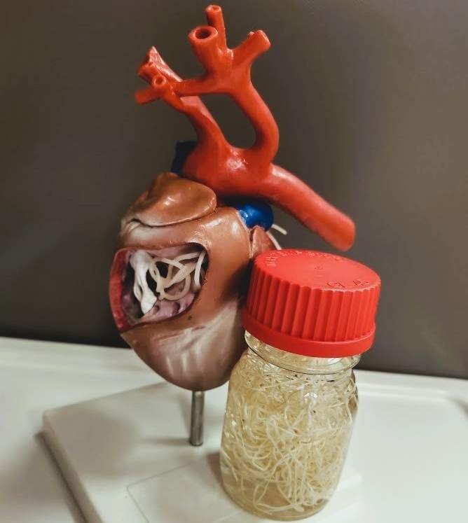 nájdená po úhyne psa v pľúcnych cievach a srdci